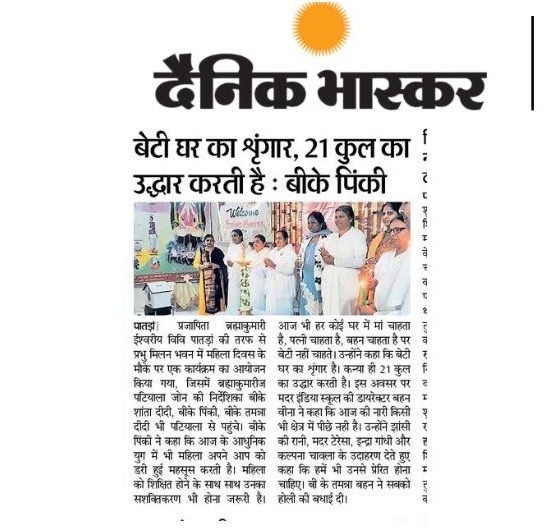 प्रजापिता ब्रह्माकुमारी ईश्वरीय विश्वविद्यालय, पातड़ा की तरफ से प्रभु मिलन भवन में महिला दिवस के मौके पर एक कार्यक्रम का...