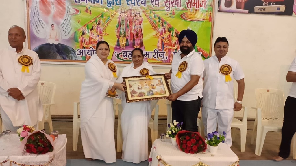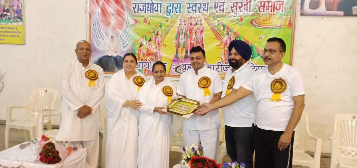 सम्मान की लडी में ब्र कु राखी को सम्मान देते डी सी कुमार अमित साथ में ब्र कु जगदेव भाई आयुष्य के जिला अधिकारी डा अनिल गर्ग तथा अन्य अधिकारी गण